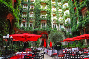 С мая по сентябрь ресторан во внутреннем дворе отеля предлагает парижское очарование на свежем воздухе в окружении яркой зелени и под с красными зонтиками. Вдали от суеты города, открывайте вкусные сезонные блюда.